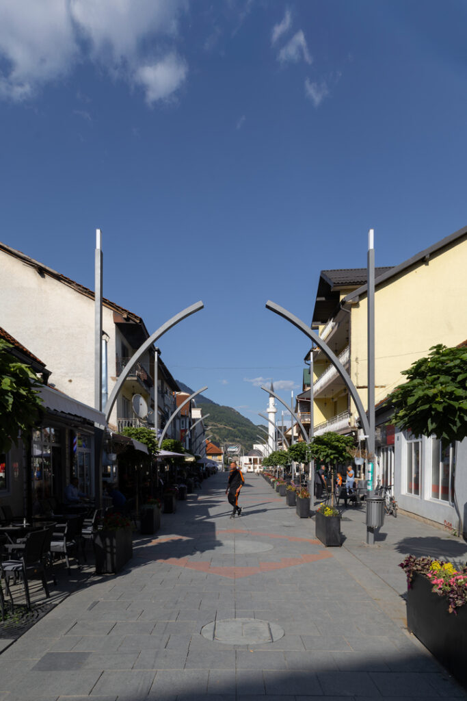 Na dužini od oko 150m i zahvatu od cca 2 620.00m2 planiranom rekonstrukcijom glavne gradske ulice predsatvlja pješačku promenadu grada, oslobođenu kolskog saobraćaja u mjeri u kojoj je to moguće. Uređenje buduće pješačke ulice se zasniva na ideji da se sačuva i transponuje prepoznatljivi element kulturne baštine karakterističan za ovo područje – ćilim. Popločanje je […]