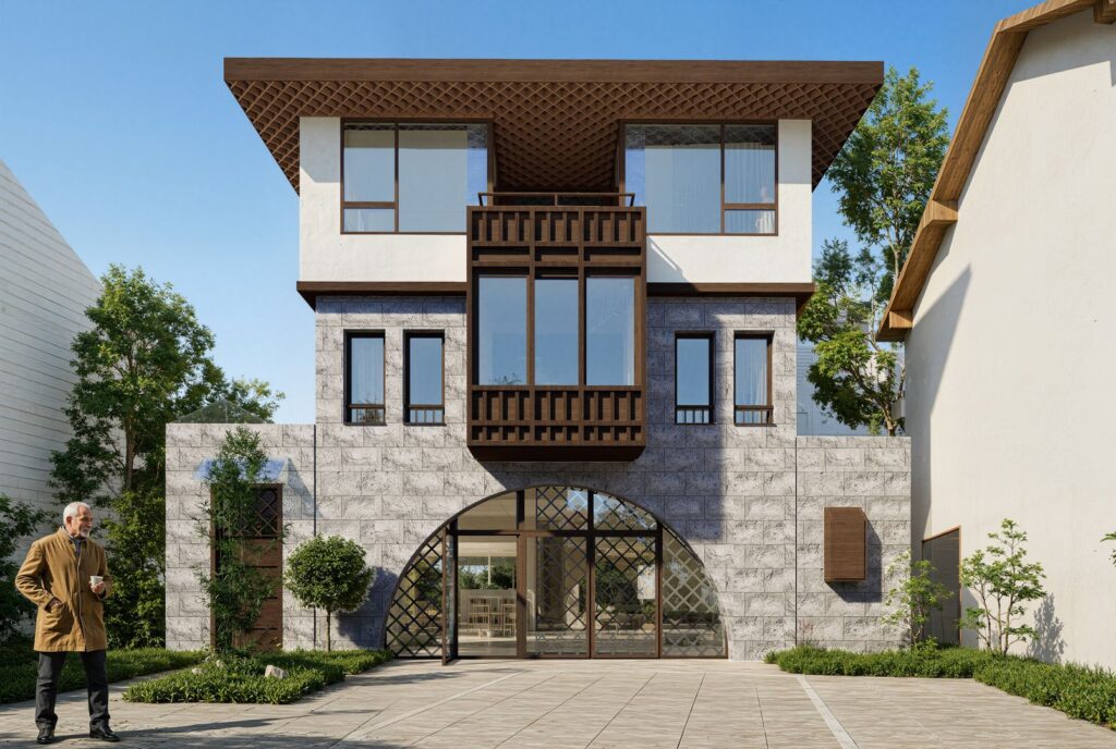 Osnovna ideja bila je transponovati tradicionalnu „bjelopoljsku kuću, sa prepoznatljivim elementima orjentalne arhitekture – doksat,podstrešnica, mušebek itd… Tradicionalni elementi transponovAti su upotrebom savremenih materijala, čistih linija, ali sa ciljem da ostanu prepoznatljivi elementi na objektu. Kako je spratnost novoprojektovanog objekta 3 etaže, cilj je bio od dvije etaže (prizemlje i sprat) vizuelno napraviti jednu. To […]